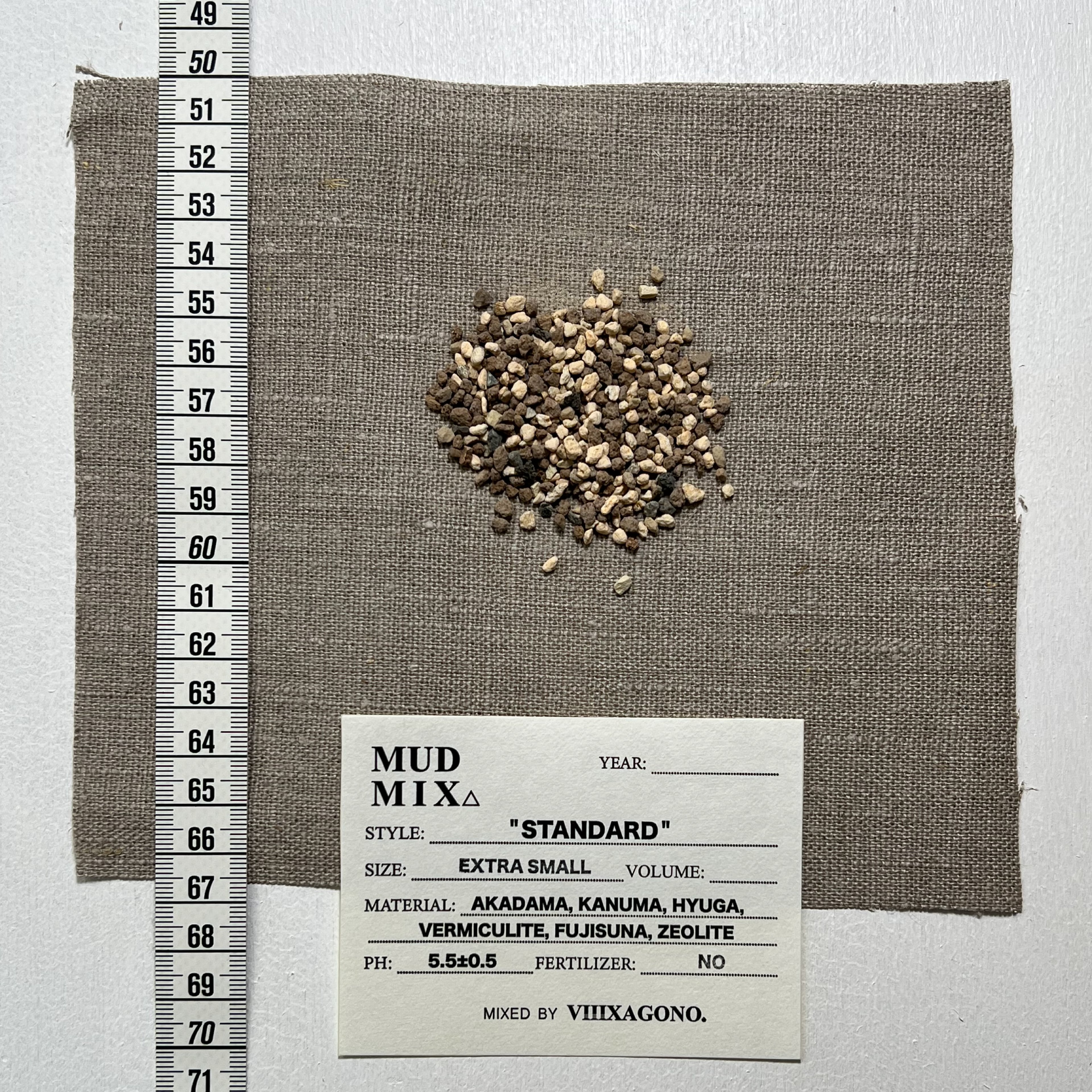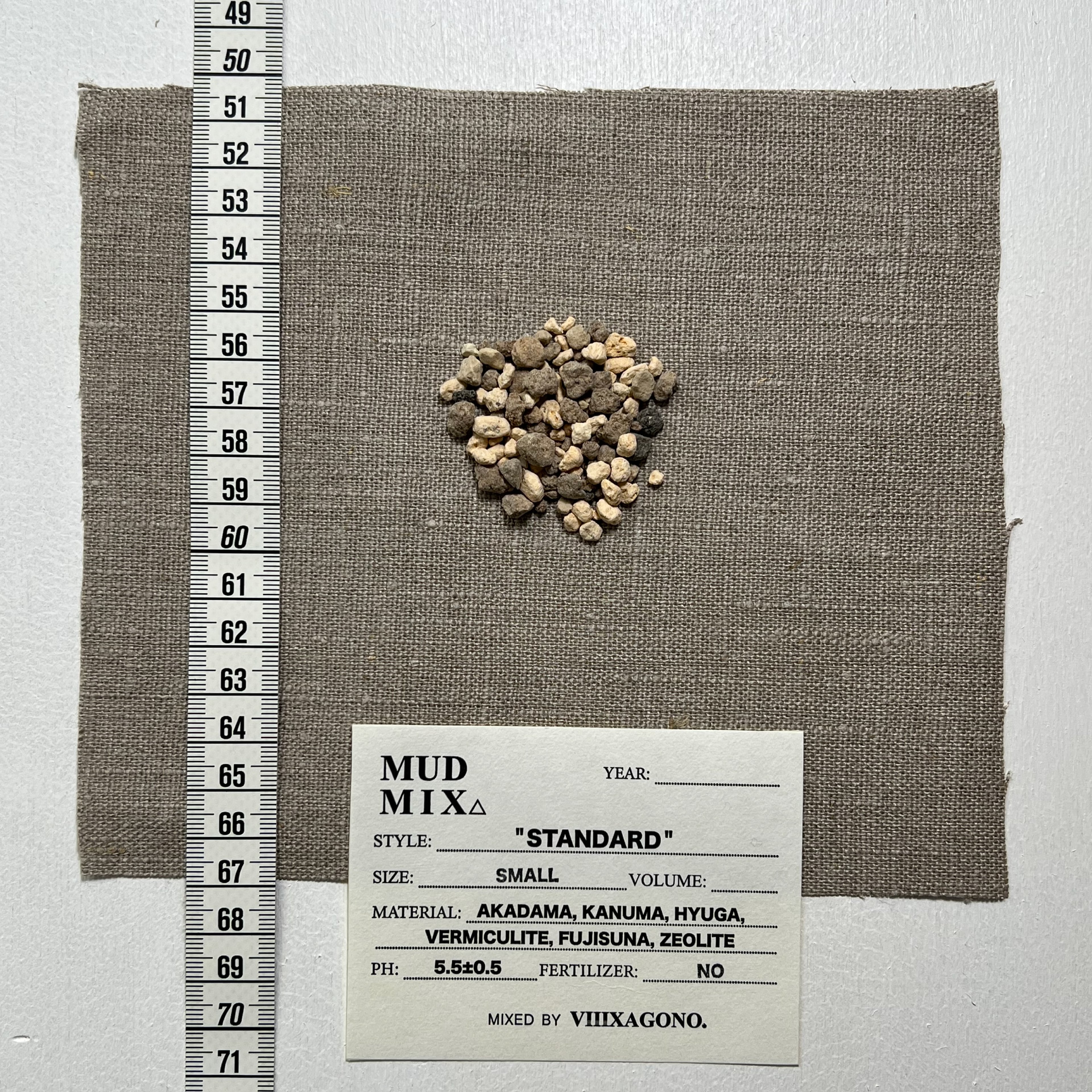 原料: 赤玉土(茨城県産中部), 鹿沼土(鹿沼市北部産), 日向土(宮崎県産), バーミキュライト, 富士砂, ゼオライト